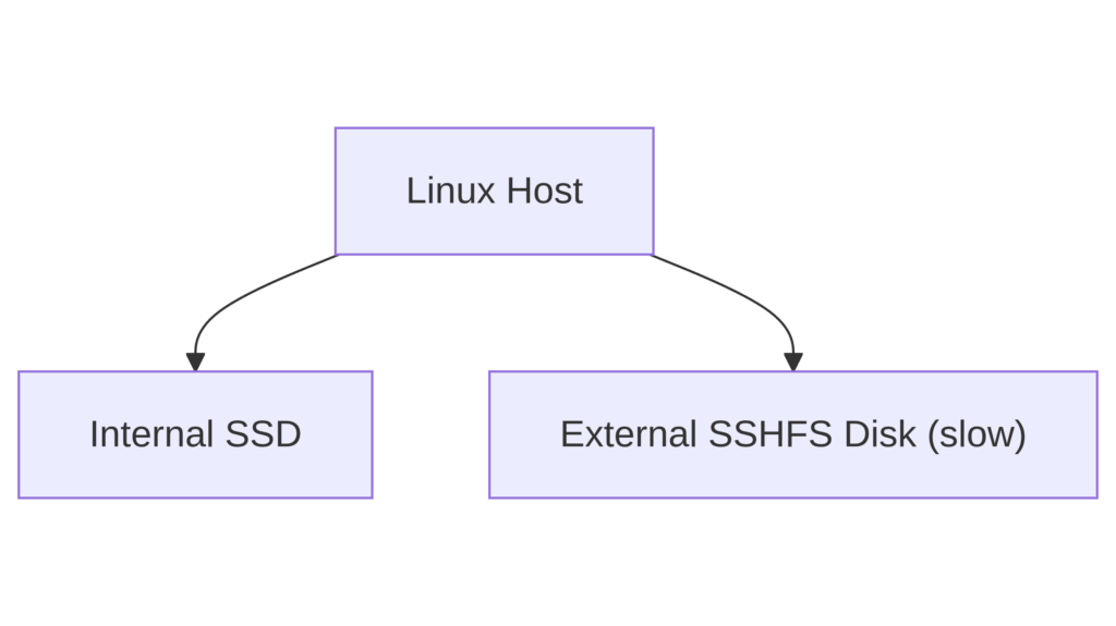 Since there are many ways of doing this, I am depicting here the setup I am using on Hetzner: a regular virtual host with an internal SSD drive and externally attached a storage box via SSHFS: